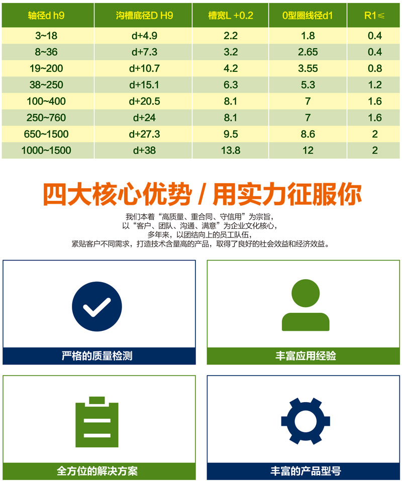 斯特封一般由一個橡膠〇型圈及聚四氟乙烯圈組合而成。〇型圈為施力元件,提供足夠的密封力,并對聚四氟乙烯圈起補償作用。適用于液壓缸活塞桿用密封。斯特封為單作用密封,分為活塞用斯特封和活塞桿用斯特封。斯特封具有摩擦力低,無爬行,啟動力小,耐高壓,溝槽結(jié)構(gòu)簡單等優(yōu)點。